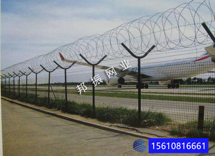 機(jī)場護(hù)欄網(wǎng)又稱作“機(jī)場護(hù)欄”、“Y型安全防御護(hù)網(wǎng)”,它是由V型支架立拄,加強(qiáng)型焊接片網(wǎng),安全防盜連接件和熱鍍鋅刀片刺籠組成是強(qiáng)度和安全防御性級(jí)別很高的隔離柵產(chǎn)品。近年來,被廣泛應(yīng)用在機(jī)場,軍事基地等高安全場所。注:如果在機(jī)場護(hù)欄網(wǎng)頂部加裝刀片刺絲、刀片刺繩后又很好的增強(qiáng)了安全防護(hù)性能。